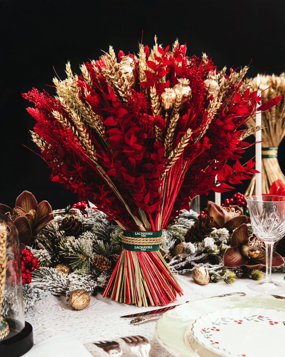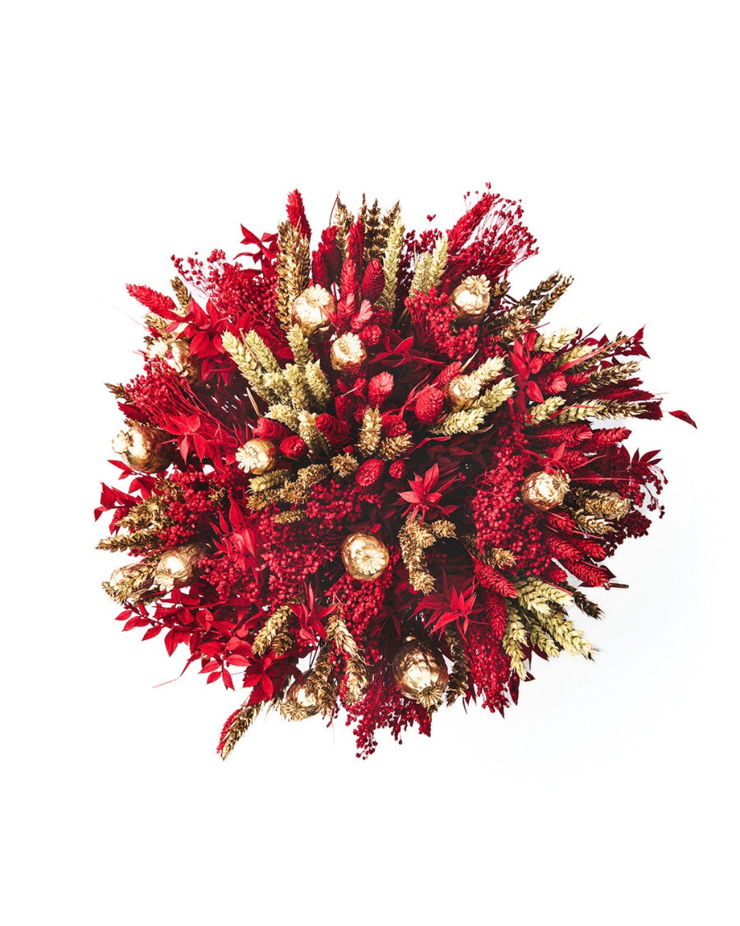 Nous sommes heureux de vous présenter notre nouvelle création pour les Fêtes : le bouquet sec L’Éclat des Fêtes. Minutieusement assemblé à la main, ce bouquet éclatant révèle une palette chaleureuse de rouges et de doré. Blé doré, pavots dorés, broom bloom rouge, ruscus rouge, blé naturel et phalaris rouge s’entrelacent dans une harmonie festive évoquant toute la magie de Noël. Conçu pour traverser les années avec grâce, il devient un objet décoratif d’exception et un cadeau raffiné, parfait pour célébrer les fêtes avec poésie et sophistication.
