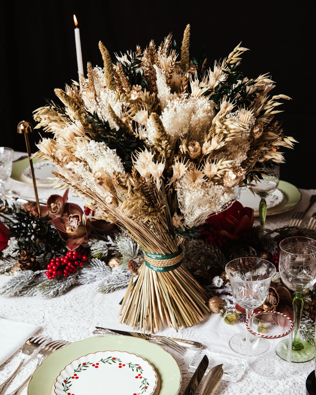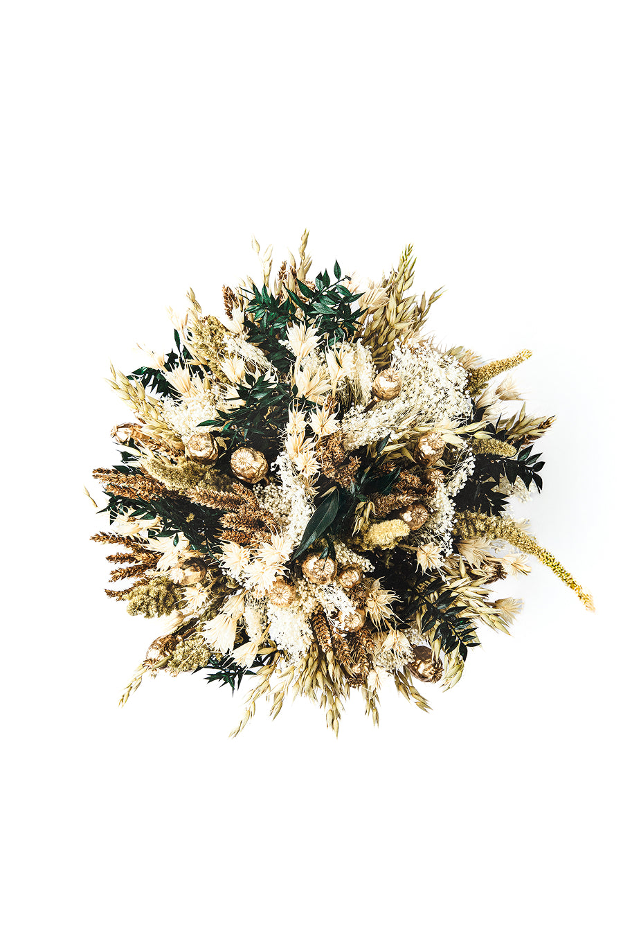 Nous sommes heureux de vous présenter notre nouvelle création pour les Fêtes : La Douceur des Fêtes, un bouquet sec délicatement façonné à la main. Cette création lumineuse dévoile une palette apaisante de blancs doux, d’or délicat et de nuances naturelles. Blé doré, pavots dorés, broom bloom blanc, nigelle blanche, avoine naturelle, amarante verte et ruscus vert s’unissent dans une composition élégante, évoquant la sérénité et la magie des Fêtes. Pensé pour traverser les années avec grâce, ce bouquet devient un objet décoratif d’exception et un cadeau raffiné, idéal pour célébrer la saison avec douceur et poésie.